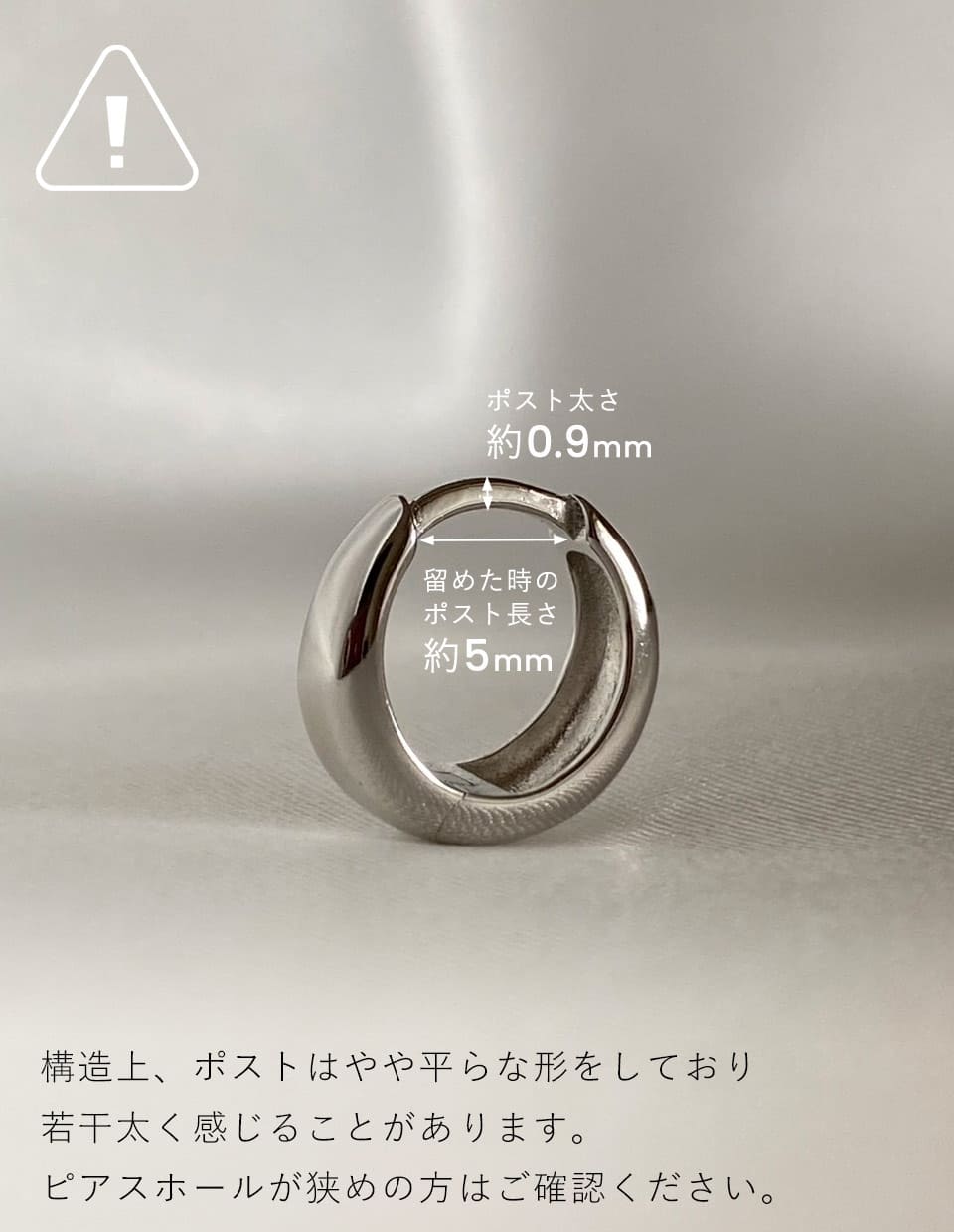 ※ こちらのピアスはデザイン上、ポストが丸め・やや太め(約0.9mm)です。