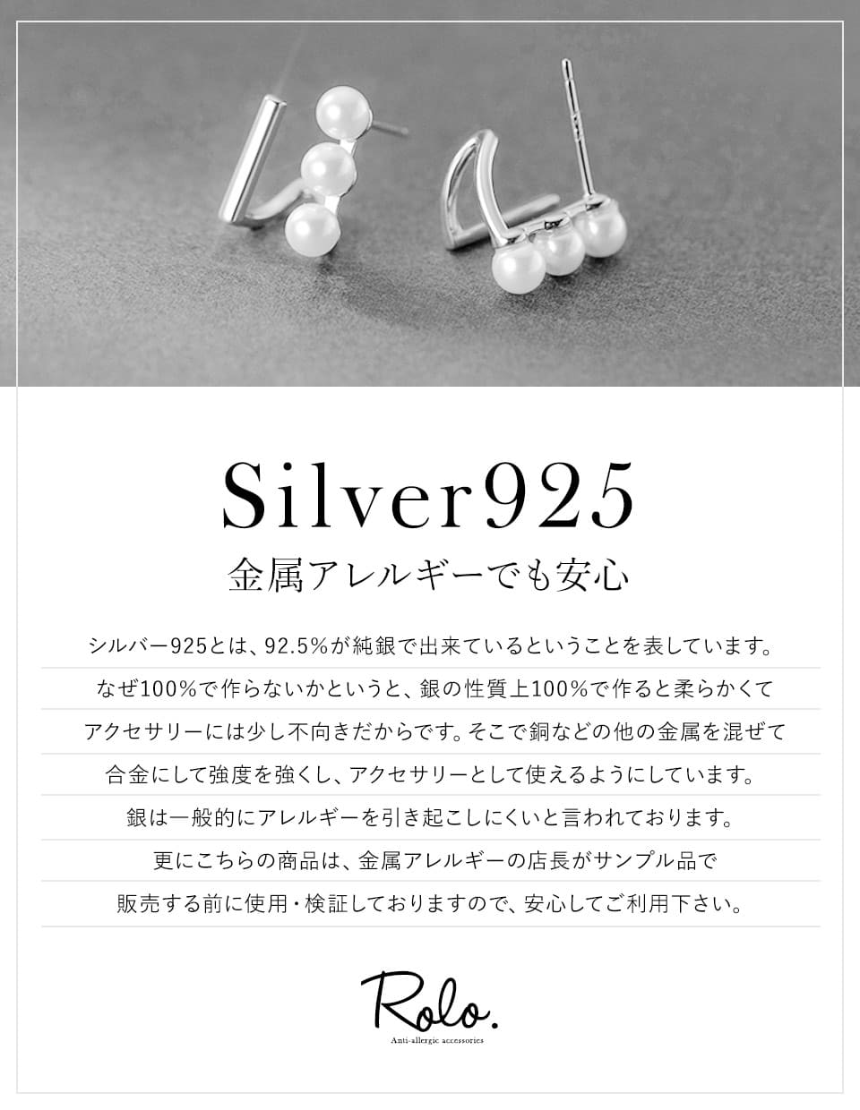 こんにちは!Rolo.アクセサリーのakiです。 今日、淡水パールリングピアスを再入荷したのでちょっとあらためて紹介させていただきます。 この淡水パールリングピアスを初めてリリースしたのは、とても仕事に追われていた時期のことでした。 忙しいながらも、打ち合わせなどでは「ちゃんとして見えたい」とすごく思っていた時期。 そんなときにこのピアスをみつけて、鏡を見て思ったんです。 「あ、ちょっと知的5割増しかも。」と。笑 もちろん本当に「知性が5割増しになる!」というわけではないのですが、何もつけていない日と比べると、耳元にパールがあるだけで印象はちょっと整う。 その“ちょっと”が、仕事を始める前に、とてもちょうどよかった。 パールは本来やわらかい印象ですが、シルバーと組み合わせているからかこのピアスの場合、甘くなりすぎません。 主張は控えめ。でも、きちんと感はちゃんとある。 だから、ビジネスシーンにも自然になじみます。 仕事をしていると、特別に華やかである必要はないけれど、ちゃんとして見せたい日は多いですよね。 この淡水パールリングピアスは、派手さではなく、“整い”を足してくれるピアスだと思っています。 知的5割増し。そんな気分で仕事に向かいたい日に。 ビジネスシーンも好印象な、さりげないパールをお探しの方におすすめです◎ ビジネスシーンも好印象。さりげないパールをお探しの方に。 ▶︎ 淡水パールリングピアスをチェック