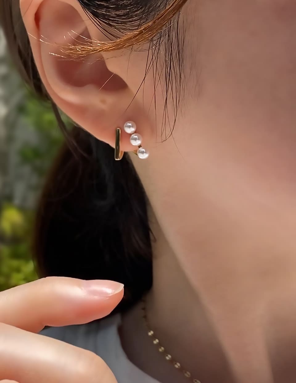 どんなコーデも、スティックパールピアスと合わせれば、凛と華やかに