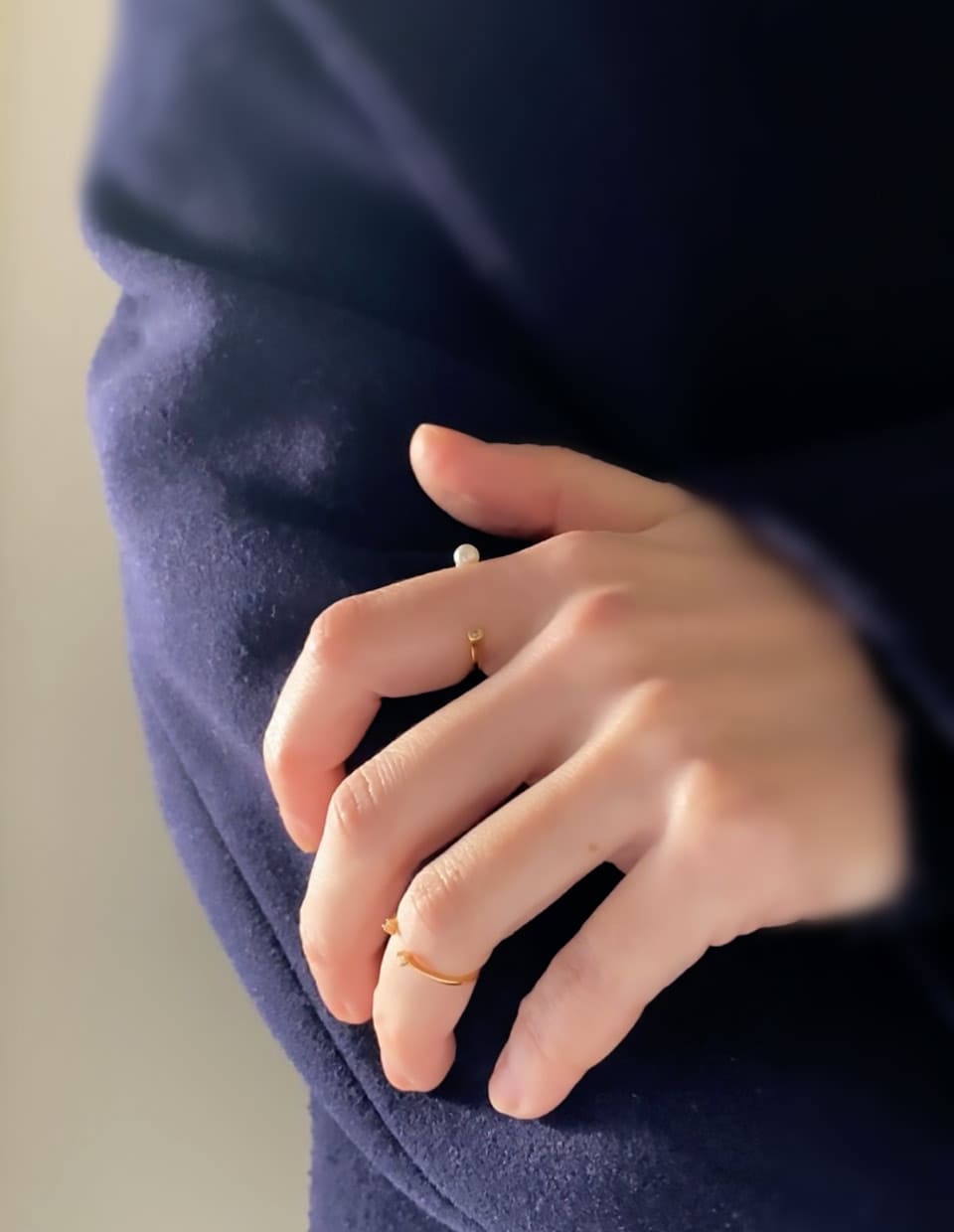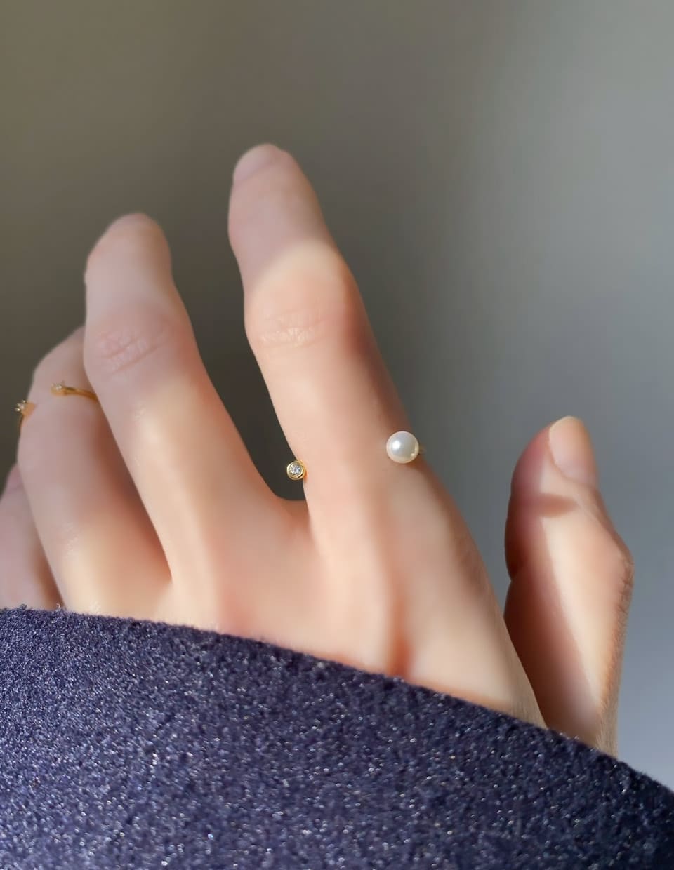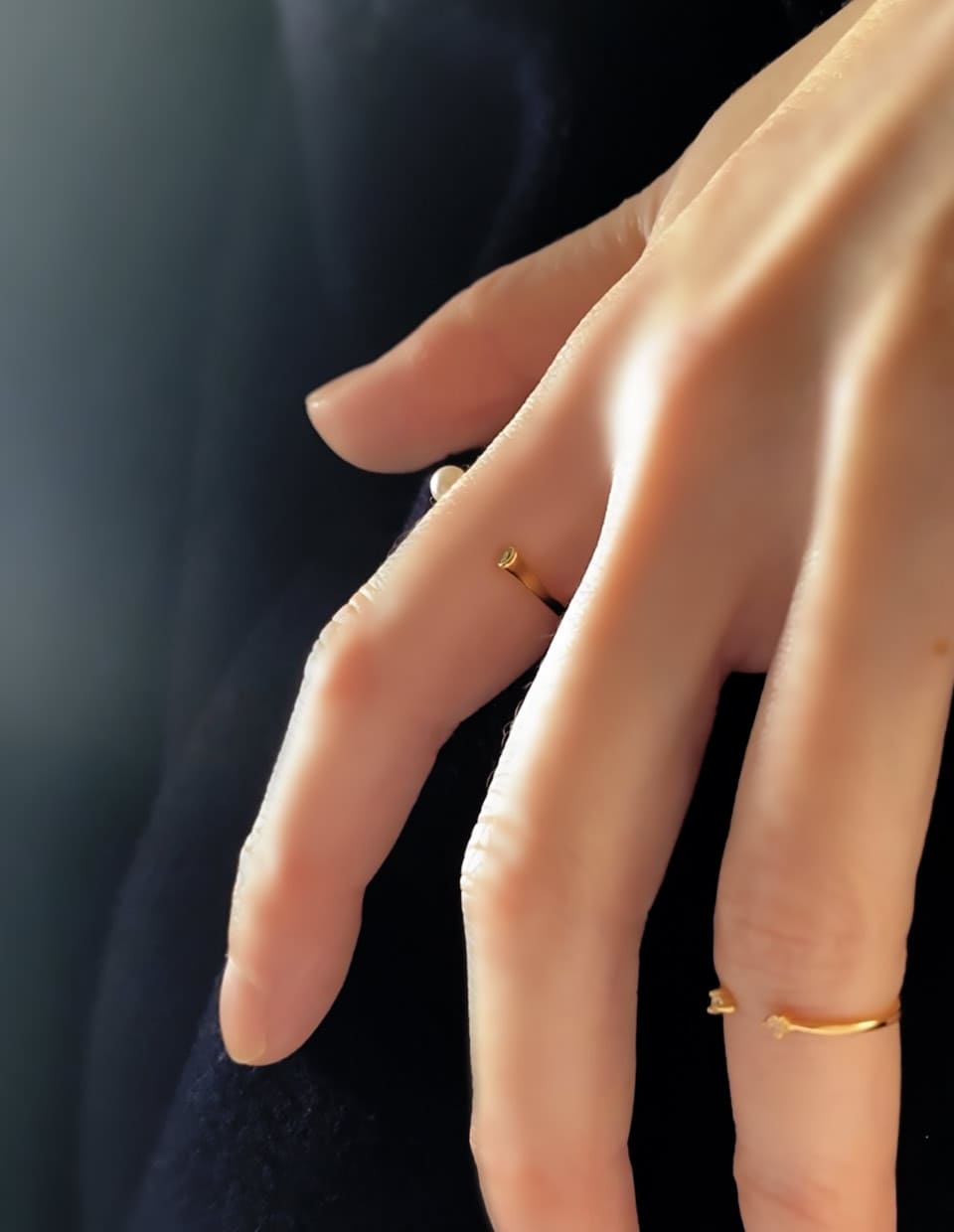 輪が完成しきらないことで生まれる“余白”が、指そのものの形を美しく見せ、